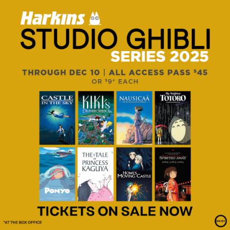 See all your Studio Ghibli favorites return to the BIG screen during the Studio Ghibli Series at select Harkins. Join Harkins for Wednesday and Saturday showings through Wednesday, December 10 for only $9 each or purchase your All Access Pass for $45.
