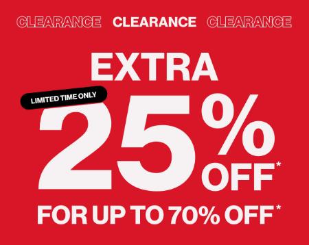 Hurry in and get an extra 25% off on clearance items for up to 70% off in store for a limited time.