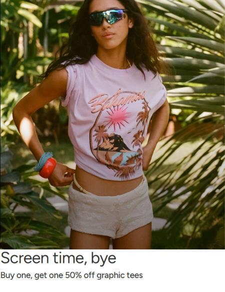 Shop in store and buy one, get one 50% off graphic tees for a limited time.