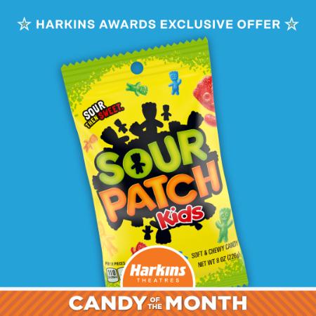 Feel the power of the SOUR! Through January 31, Harkins Awards Members can enjoy $1 off Sour Patch Kids!