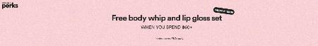 Hurry in and receive free body whip and lip gloss set when you spend $60+ in store for a limited time.