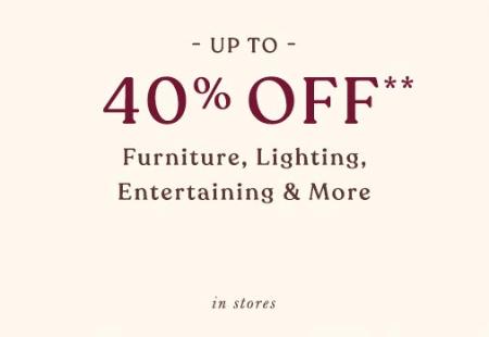 Up to 40% Off Furniture, Lighting, Entertaining & More