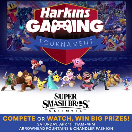 Conquer the Super Smash competition on the BIG screen at Harkins Chandler Fashion and Arrowhead Fountains on for the chance to win amazing prizes and BIG-screen bragging rights!
